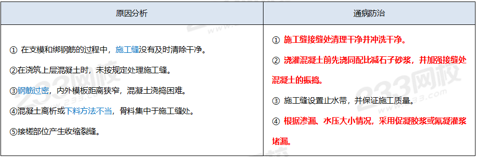 ②浇灌混凝土前先浇同配比减石子砂浆,并加强接缝处混凝土的振捣。