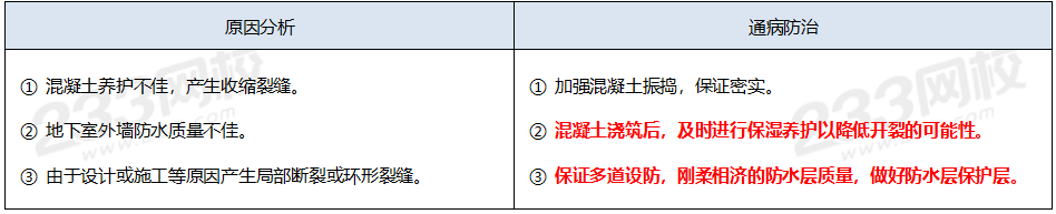 2)防水混凝土裂缝渗漏水(表面有不规则收缩裂缝且贯穿于混凝土结构)