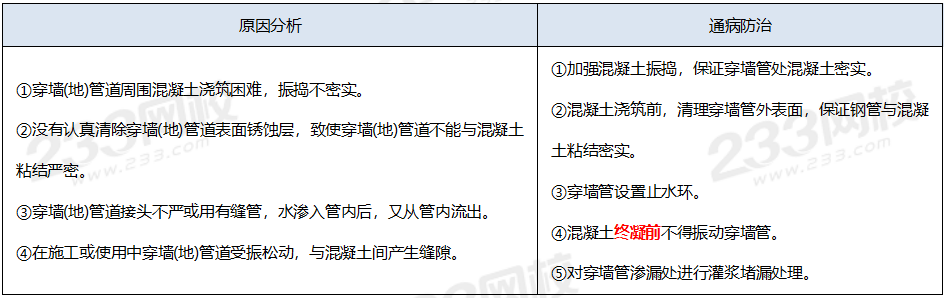 3)管道穿墙(地)部位渗漏水(管道穿墙处与混凝土脱离)