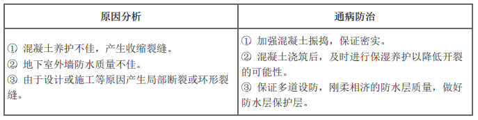 2)防水混凝土裂缝渗漏水(表面有不规则收缩裂缝且贯穿于混凝土结构)