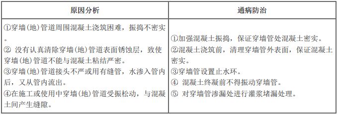 3)管道穿墙(地)部位渗漏水(管道穿墙处与混凝土脱离)
