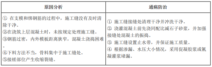 1)防水混凝土施工缝渗漏水(接槎明显,沿缝隙处渗漏水)