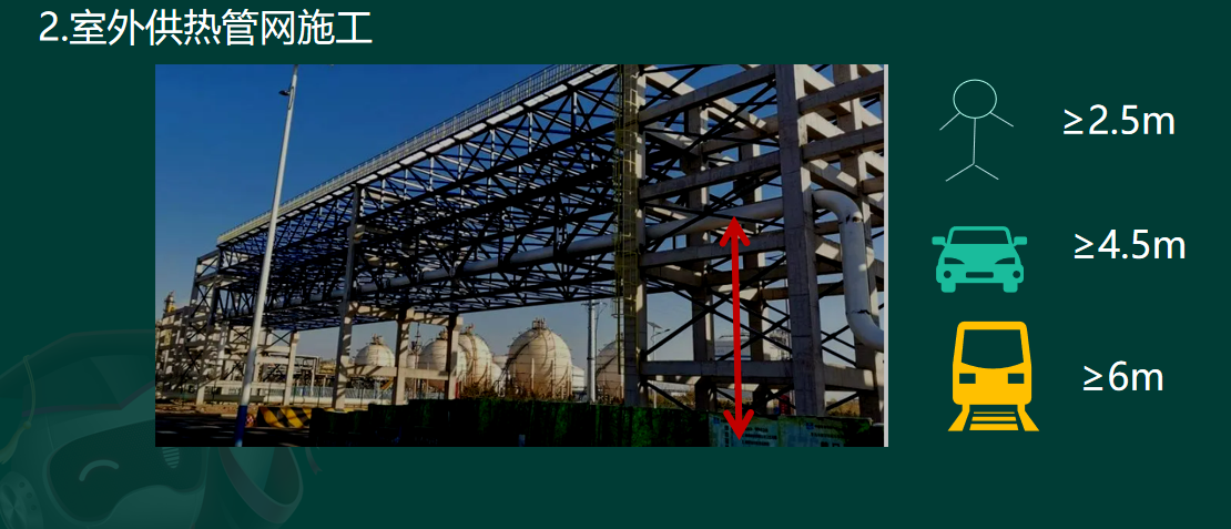 (1)架空敷设的供热管道的安装不得影响交通设施的使用功能和供热管道的安全。