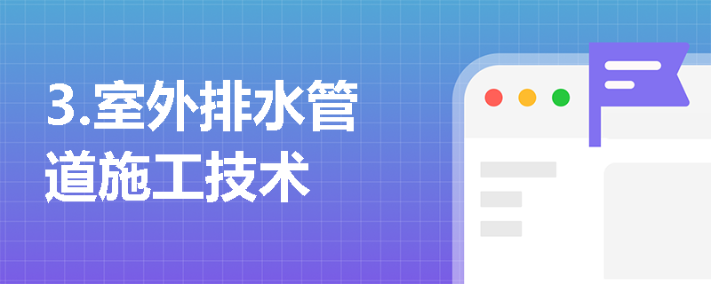 (5)室外排水管网施工程序:施工准备→测量放线→管沟、井池施工→管道元件检验→管道支架制作安装(或垫层施工)→管道预制→管道安装→系统严密性试验→防腐→系统通水试验→管沟回填。