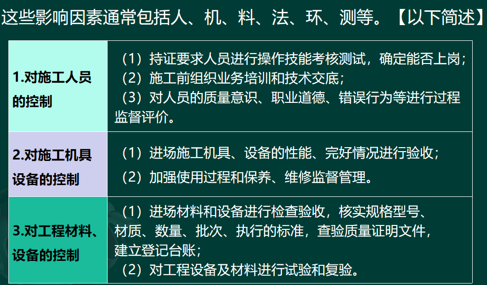 10.2.1 施工质量预控方法及内容考点解析