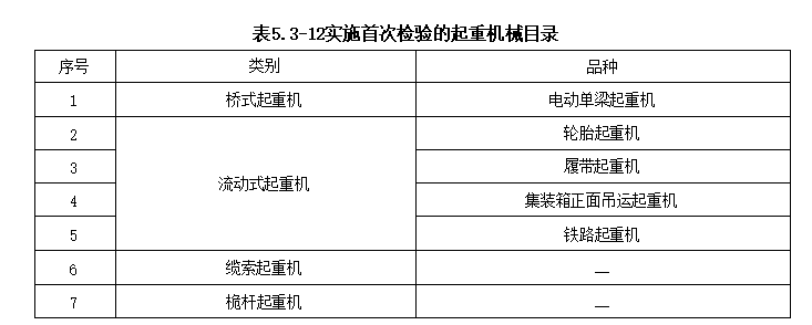 ②轻小型起重设备、桥式起重机、门式起重机、门座起重机、缆索起重机、桅杆起重机、铁路起重机、旋臂式起重机、机械式停车设备每两年1次;