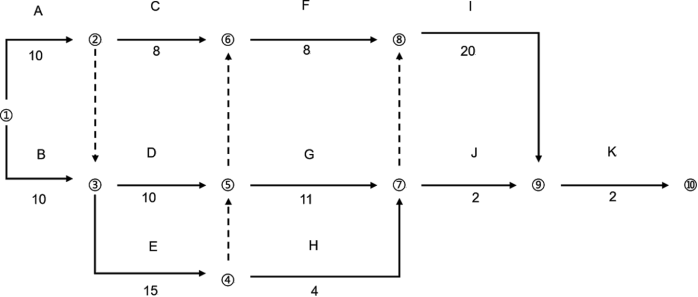根据逻辑关系,画出双代号网络图