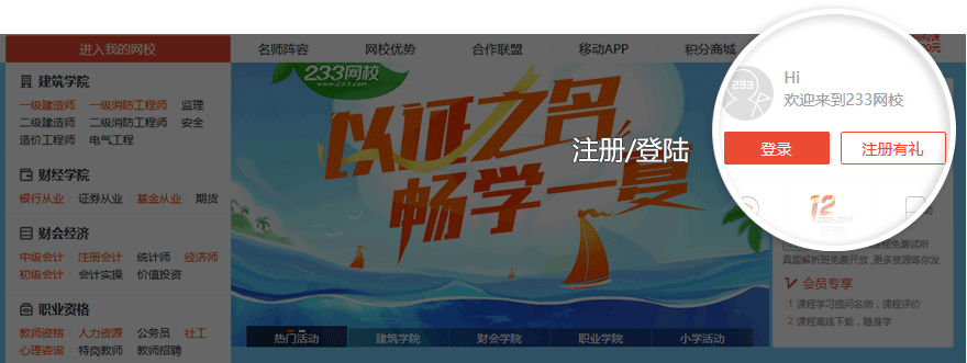 第一步:登录233网校账户,点击右上角头像进入233网校学习中心。