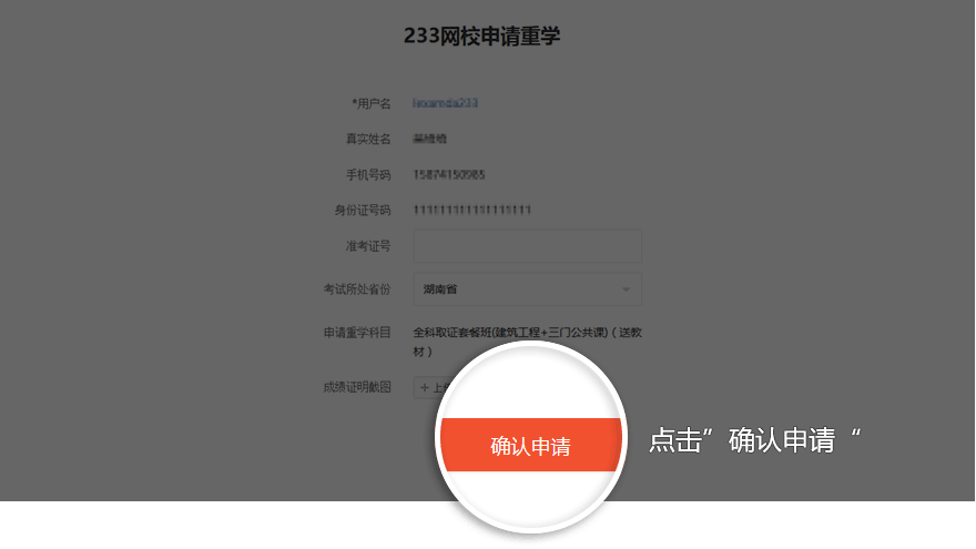 第四步:在申请重学页面,完善相关个人信息,点击【确认申请】提交,工作人员将在3个工作日内进行回复。