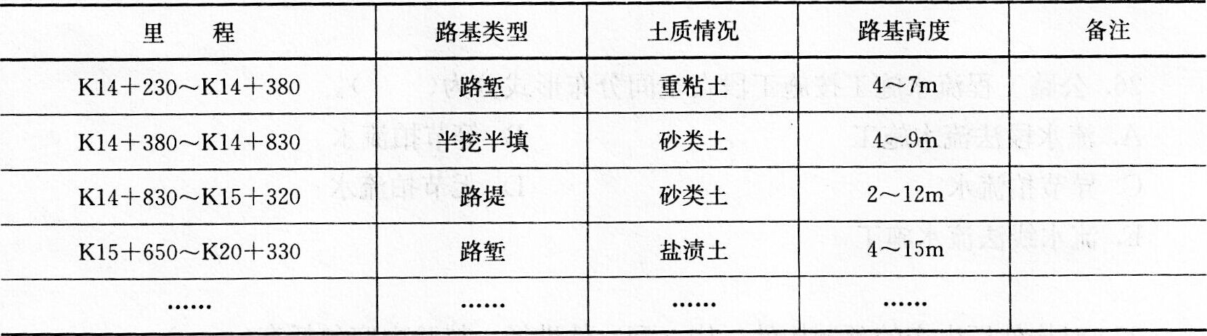 1.表中的4个路段,不宜在雨期施工的有哪些?