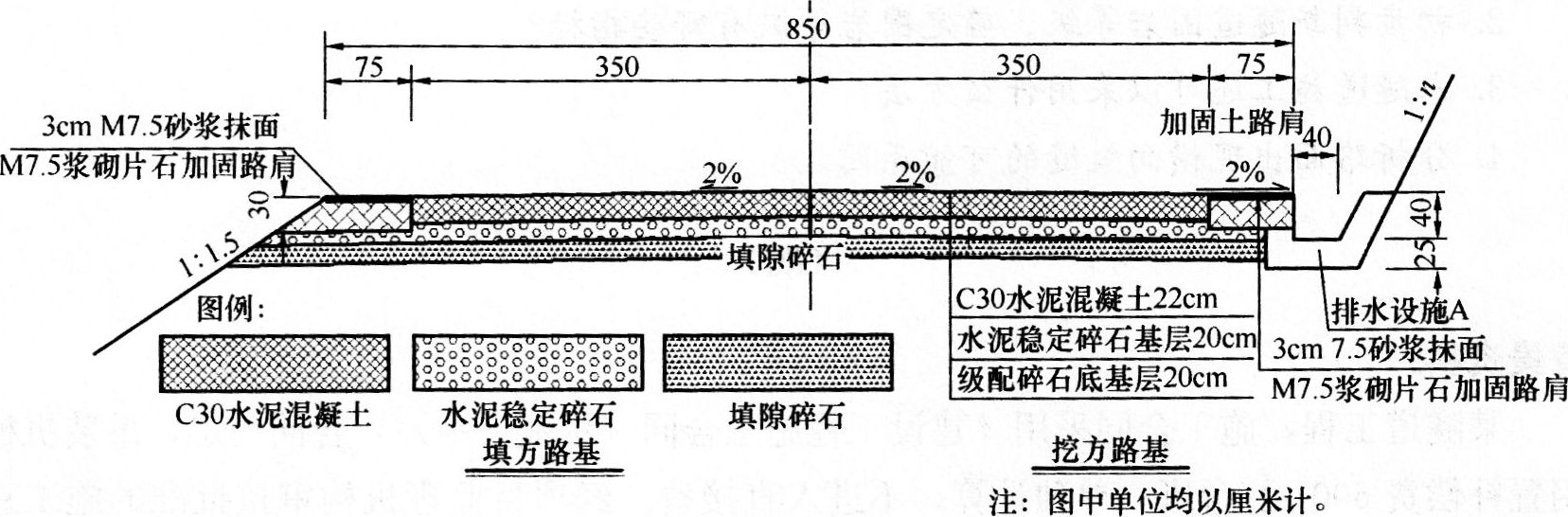 某施工单位承接了长35.5km的山区二级公路路面施工,路面面层采用C30水泥混凝土,基层为水泥稳定碎石,底基层为级配碎石。路面结构如下图所示。