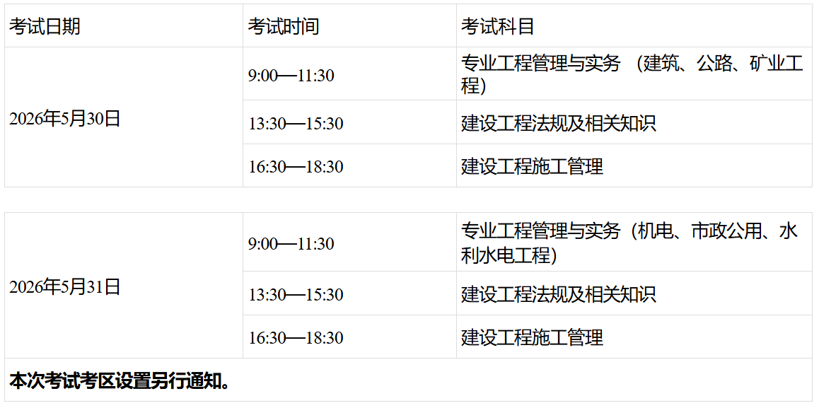 2.关于“从事建设项目施工管理工作年限”,是指报考人员全职从事建设项目施工管理工作时间的总和。工作年限计算截止日期为考试当年度的12月31日。