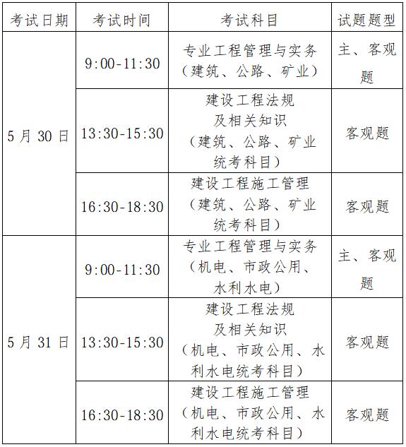 (二)考试按《专业工程管理与实务》专业分类实施,考生一天内完成全部考试。