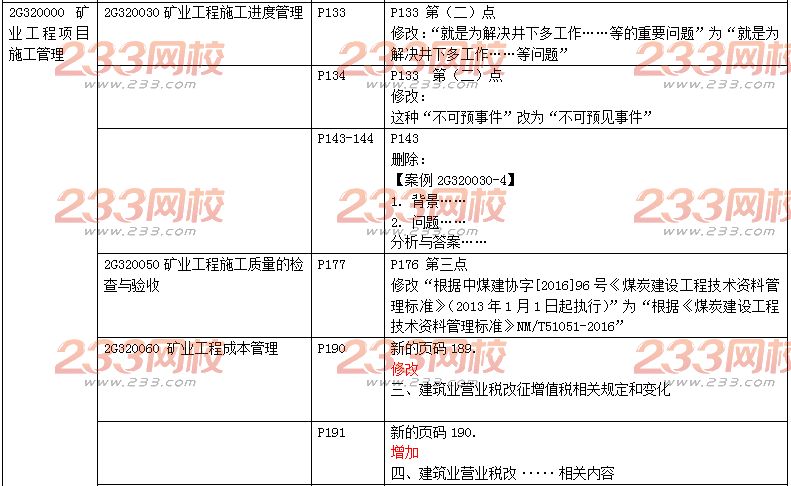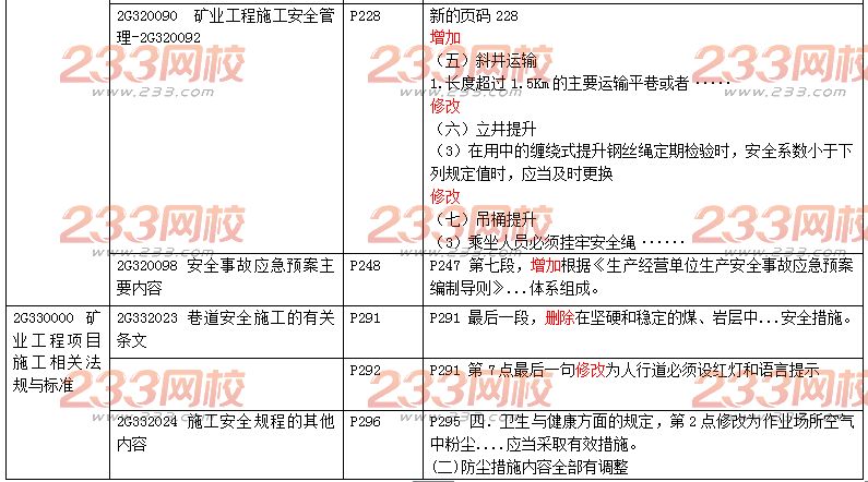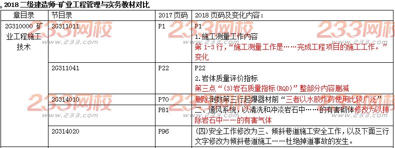 2018年二级建造师考试矿业工程教材变化对比如下:本内容为233网校独家发布,转载请注明来自233网校,违者必究!