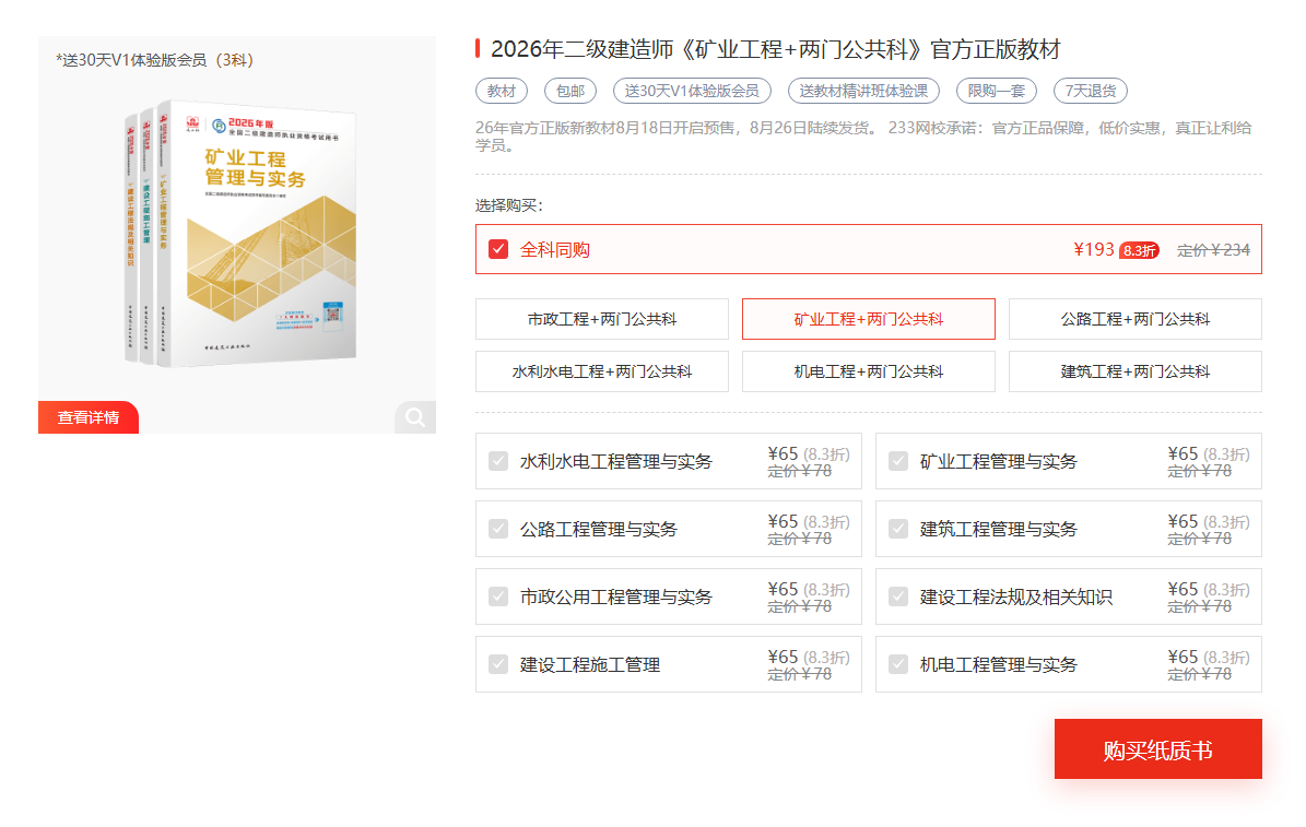 2026年版二级建造师教材2025年8月26日上市出版,《矿业工程管理与实务》科目变化新教材大不大?233网校为大家整理了二建各科新教材变化对比解读,一起来看看~