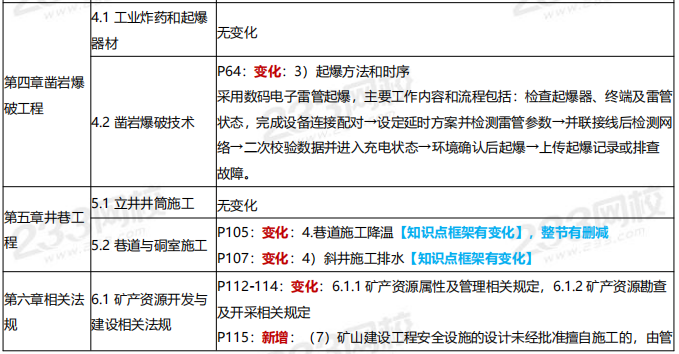 由于内容过长,建议大家点击下载二建《矿业》新教材对比PDF版本进行查看,在备考中,大家也可以听完二建教材解读直播之后再开启备考之旅!观看直播>>