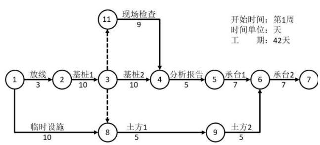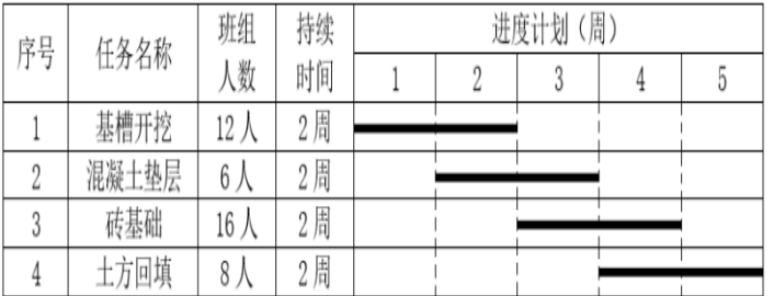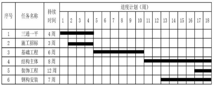 参考解析:基础工程的网络计划图绘制错误,编号应按照从小到大的顺序编号。基础工程进度计划开始时间为第1周与总进度规划中的开始时间不协调。装饰工程12周,横道图上为2周,钢构安装为7周,横道图上为6周。