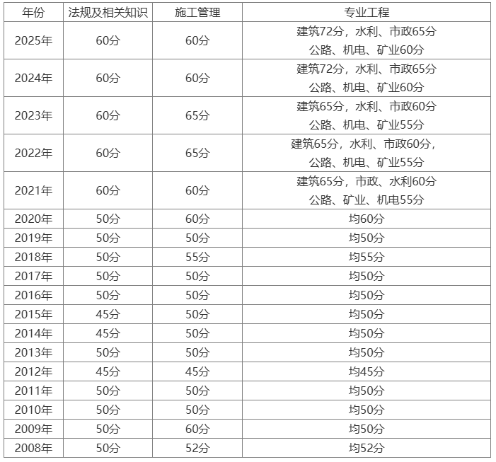 海南历年二级建造师合格标准如下: