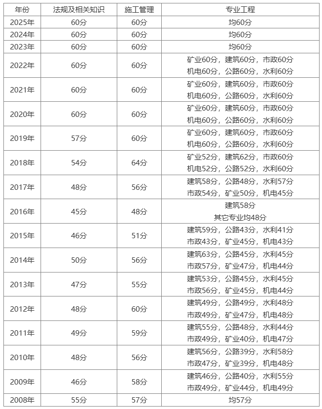 自2025年起,陕西省二级建造师各科目考试合格标准均为60分。