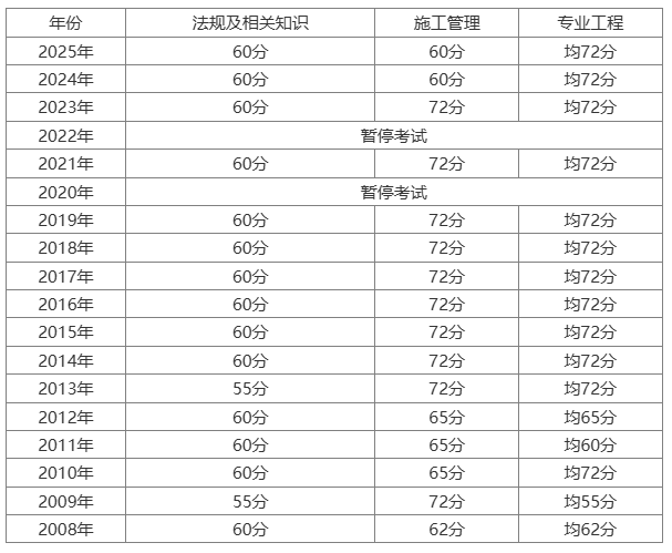 北京历年二级建造师合格标准如下: