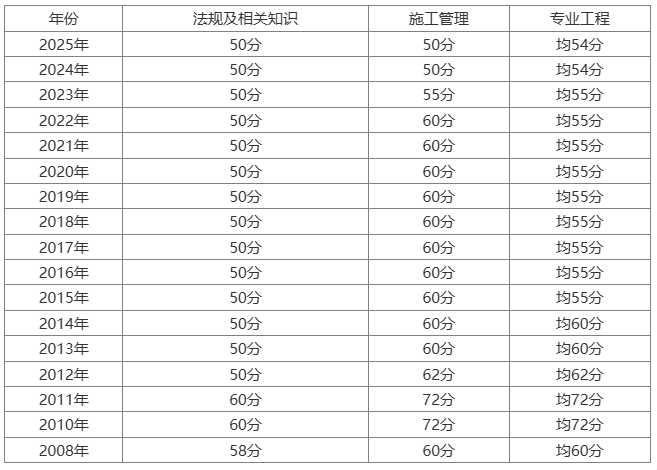 内蒙古历年二级建造师合格标准如下: