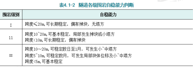 【备考策略】本考点是隧道重点考点的新增,选择和案例考点,可考性比较大,不仅需要注意围岩级别对应的自稳能力,同时要注意注释里面的分类。