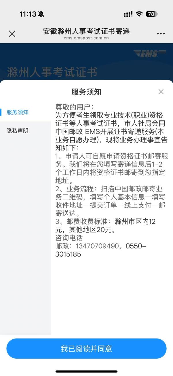 领取地点:滁州市行政服务一楼大厅公共服务区E06号邮政速递窗口
