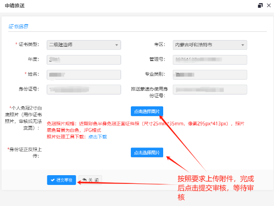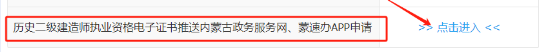 先登录内蒙古人才信息库,如果没有注册需要先注册,如果已经注册的用户直接选择个人用户登录,登录后左侧选择业务办理菜单,右侧选择“历史二级建造师执业资格电子证书推送内蒙古政务服务网、蒙速办APP申请”业务,然后按照页面要求上传个人免冠照片和相关附件材料,具体操作如下图所示: