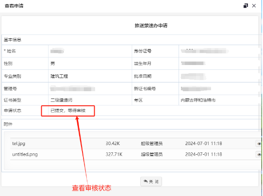 在申请页面点击查看,可以查看提交的申请以及审核状态等信息。