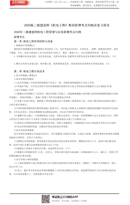 2026年二级建造师《机电工程管理与实务》教材整体变化幅度约18%(点击查看教材变化>>),但新增/变更考点需重点关注。从往年考情来看,这类考点是高频出题方向,具体要关注哪些变化?我们逐一梳理!