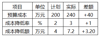 1、某施工项目某月的实际成本比计划增加3.20万元,施工成本数据如下表。应用差额计算法分析,该项目预算成本增加对于成本降低额的影响是()万元。