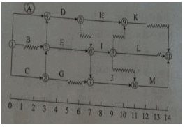 38、 某工程的单位号网络计划如下图所示(时间单位:天),该计划的计算工期为( )天。