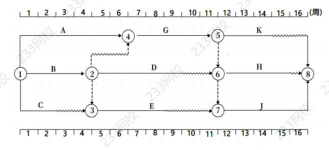 参考解析:选项A正确,关键线路为A→G→J,所以A为关键工作;