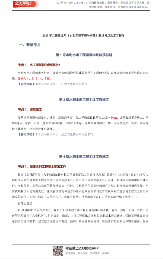 2026年二级建造师《水利水电工程管理与实务》教材整体变化幅度约10%(点击查看教材变化>>),但新增/变更考点需重点关注。从往年考情来看,这类考点是高频出题方向,具体要关注哪些变化?我们逐一梳理!