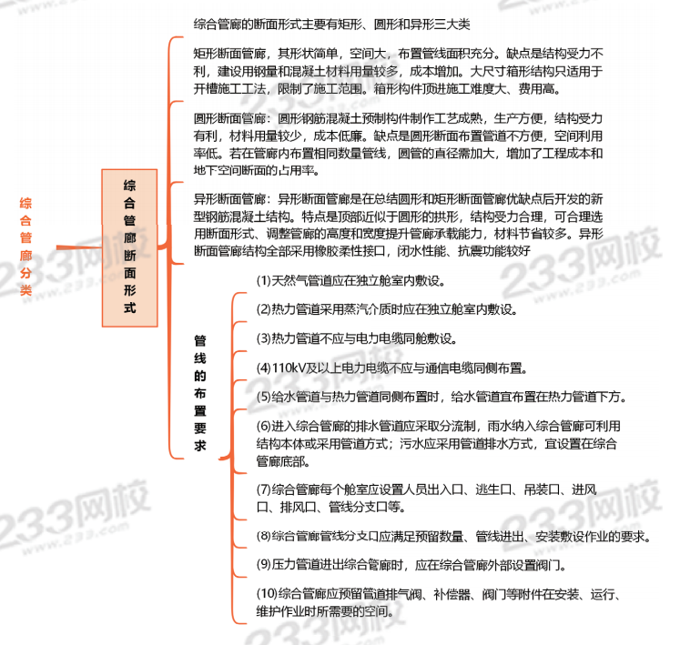 选项B:进入综合管廊的排水管道应采取分流制,雨水纳入综合管廊可利用结构本体或采用管道方式:污水应采用管道排水方式,宜设置在综合管廊底部。