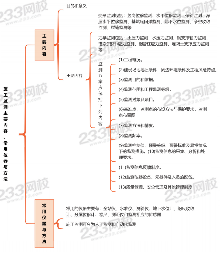 B. 环境气候监测(不选):属于环境影响监测,不属于施工监测范畴。
