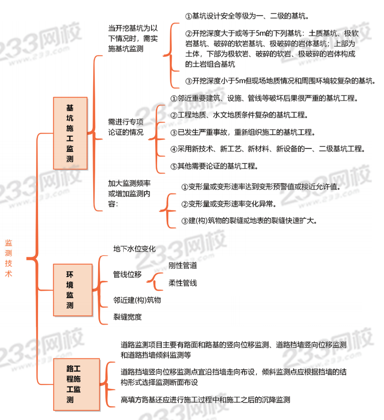 E. “三废”监测(不选):属于环境污染监测,不属于施工监测内容。