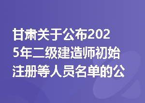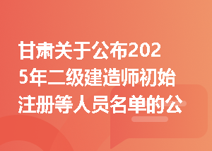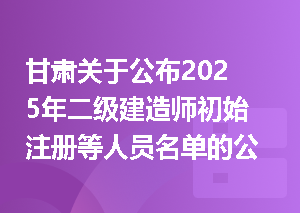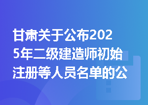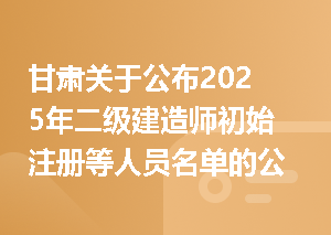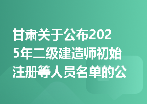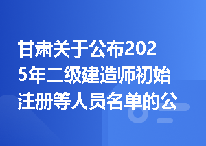 甘肃省住房和城乡建设厅关于公布2025年甘肃省二级建造师初始注册等人员名单的公告(第八十三批)甘建公告〔2025〕475号根据建设部《注册建造师管理规定》(部令第153号),《关于印发〈甘肃省二级建造师执业资格管理暂行办法〉的通知》(甘人职〔2005〕16号),参照《关于建设部机关直接实施的行政许可事项有关规定和内容的公告》(建设部公告第278号)规定,2025年甘肃省二级建造师初始、增项注册人员经省建设厅执业资格注册中心审核,并于2025年10月27日至2025年10月31日在甘肃省建设厅执业查看更多>