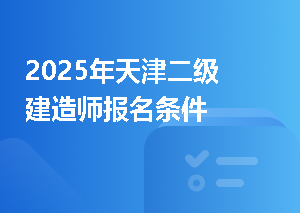 2025年天津二级建造师报名条件要求工程类或工程经济类专业,中等专科及以上学历,2年及以上工作经验,具体报名条件如下:☟☟加学霸君微信,咨询更多报考问题☟☟         2025年天津二级建造师报名条件(一)报名条件凡遵纪守法并具备工程类或工程经济类中等专科以上学历并从事建设工程项目施工管理工作满2年的,可以报名参加二级建造师资格考试。(二)免试部分科目条件符合二级建造师资格考试报名条件,且满足下列条件之一的,可以免试相应科目:1.取得《建筑查看更多>