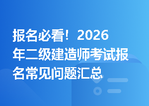 2026年二级建造师考试报名时间主要集中在2-3月份!233网校为二建考生整理了一些报考常见问题,希望能帮助大家答疑解惑,顺利完成2026年二级建造师报名环节,建议收藏本文!扫码入群↓↓↓二建报名答疑,全程指导,助您报名成功!如何查看我的收藏?【打开233网校APP→我的→我的收藏/记录/关注→头条收藏】报名条件类2026年二级建造师考试各地报名条件汇总2026年二建报考条件解读:工程类、工程经济类专业有哪些?2026年二建报考条件解读:学历学位要求是什么?2026年二建报考条件解读:从事建设工查看更多>