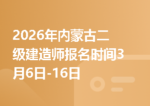 根据内蒙古人事考试网发布的《关于内蒙古自治区2026年度二级建造师执业资格考试报名的通知》,2026年内蒙古二级建造师报名时间2026年3月6日-3月16日,网上资格审查时间3月6日-3月17日 (工作日9:00-12:00,14:30-17:00),网上缴费截止时间3月18日,打印准考证时间5月25日-5月31日。插入模块2026年内蒙古二级建造师考试设置(一)考试科目及成绩管理二级建造师执业资格考试设《建设工程施工管理》、《建设工程法规及相关知识》和《专业工程管理与实务》三个科目。其中《建设查看更多>