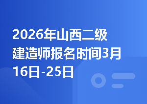 根据山西省人力资源和社会保障厅发布的《关于做好山西省2026年度二级建造师执业资格考试考务工作的通知》,2026年山西晋城二级建造师考试报名时间:3月16日至3月25日,网上交费时间:3月16日至3月26日,准考证打印时间:5月26日至5月29日。↓↓2026各地二建报名时间及入口↓↓2026年山西二级建造师考试时间安排5月30日上午 9:00-11:30 专业工程管理与实务(建筑、公路、矿业工程)下午13:30-15:30 建设工程法规及相关知识16:30-18:30 建设工程施工管理5月31查看更多>