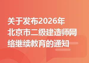 关于发布2026年北京市二级建造师网络继续教育的通知京建教协〔2025〕31号各有关单位:根据京建发〔2017〕265号文件精神,北京市二级建造师应按照《注册建造师继续教育管理暂行办法》(建市〔2010〕192号)要求的继续教育标准积极参加继续教育,及时掌握工程建设有关法律法规、标准规范,增强职业道德和诚信守法意识,熟悉工程建设项目管理新方法、新技术,总结工作中的经验教训,不断提高综合素质和执业能力,提高建设工程项目管理水平,保证工程质量安全。北京市注册建造师继续教育网络平台继续本着实用、方便的查看更多>