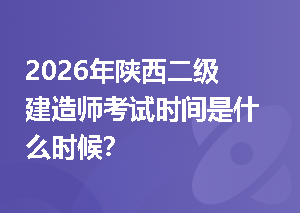 2026年陕西二级建造师考试时间是什么时候?根据陕西省住房和城乡建设厅综合服务中心发布的《2026年度陕西省建设类职业资格考试计划》的通知,2026年陕西二级建造师考试时间是5月30日、31号!2026年陕西二级建造师考试报名即将启动,一年仅一次报考机会,可以提前订阅考试提醒,以免错过考试报名!>>点击预约宁夏二建报名提醒插入模块2026年陕西二级建造师报名时间:注意,陕西二级建造师报名时间每年具体时间可能存在差异,具体时间需以2026年二建考务通知为准。>>点击查询陕西查看更多>
