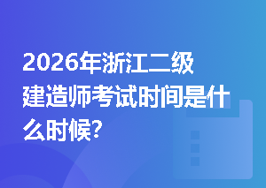 2026年浙江二级建造师考试时间是什么时候?根据浙江人事考试网发布的《2026年度人事考试工作计划》,2026年浙江二级建造师资格考试时间5月30日、31日。2026年浙江二级建造师考试报名即将启动,一年仅一次报考机会,可以提前订阅考试提醒,以免错过考试报名!>>点击预约浙江二建报名提醒插入模块2026年浙江二级建造师报名时间:注意,浙江二级建造师报名时间每年具体时间可能存在差异,具体时间需以2026年二建考务通知为准。>>点击查询浙江二级建造师历年报名时间2026年浙江查看更多>