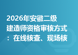 2026年安徽二级建造师资格审核方式:在线核查、现场核查。插入模块2026年安徽二级建造师资格审核方式按照告知承诺制有关要求,应对报考人员进行报考资格核查,具体包括在线核查和现场核查两种方式。1.在线核查。报名系统将对接政务信息共享接口,自动对学历学位、所学专业、工作年限、社保缴纳情况等进行核查。在线核查通过的,进入缴费环节;在线核查不通过的,须参加现场核查。在线核查结果最迟将于2026年3月9日公布,请报考人员及时登录报名系统,查看核查结果。在线核查通过的,进入缴费环节;在线核查不通过的,须参查看更多>