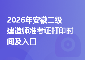 根据安徽省人事考试网发布的《2026年度安徽省二级建造师执业资格考试公告》,2026年安徽合肥二级建造师准考证打印时间5月26日16:00后。插入模块2026年安徽二级建造师准考证打印时间及入口本次考试考点设在设区的市政府所在地,选用标准化考场,请应试人员于5月26日16:00后登录安徽省人事考试网下载打印本人准考证,查看考试地点,并提前做好有关准备。【2026年安徽二级建造师准考证打印入口】准考证打印流程:①进入当地人事考试网或住建厅网报系统;→②输入考生用户名、密码以及验证码;→③点击”我的查看更多>
