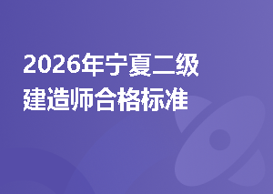 2026年宁夏二级建造师合格标准暂未公布。插入模块宁夏历年二级建造师合格标准如下:二级建造师考试不同地区的分数线有所不同,其合格标准受考试人数、市场需求要以及相关政策等多方面的影响,各地自行划定。立即查看>>二级建造师全国历年合格分数线2026年宁夏二级建造师成绩查询考试成绩在“宁夏人事考试中心网”发布后,成绩合格人员须及时关注网上公告,务必在规定时间提交相关资料资格复审。插入模块👇提前预约考试提醒,重要消息不错过!2026年宁夏二级建造师成绩管理二级建造师执业资格考试设置3个考试查看更多>