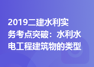 2019二建水利实务考点突破:水利水电工程建筑物的类型及组成(二)【39天全书预习考点,点击下载】水闸的类型:1、按其所承担的任务分为进水闻、节制闸、泄水闸、排水闸、挡潮闸等。2、按闻室结构形式分为开敞式水闸和涵洞式水。水闸的组成及作用:1、闸室:水间的主体,起挡水和调解水流的作用,它包括底板、闸墩、间门、胸墙、工作桥和交通桥等。2、上游连接段:铺盖(作用主要是延长渗径长度以达到防渗目的,应该具有不透水性,同时兼有防冲功能)护底与护坡(作用是防止水流对渠底及边坡的冲刷,长度一般为3-5倍堰顶水头查看更多>
