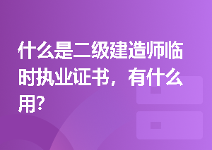 二级建造师是建筑类的一种职业资格,是担任项目经理的前提条件。二级建造师执业资格考试合格者,由省、自治区、直辖市人事部门颁发《中华人民共和国二级建造师执业资格证书》。取得建造师执业资格证书、且符合注册条件的人员,必须经过注册登记后,方可以建造师名义执业。;各省、自治区、直辖市建设行政主管部门制定本行政区域内二级建造师执业资格的注册办法,报建设部或其授 权机构备案。准予注册的申请人员,即获得《中华人民共和国二级建造师注册证书》方可受聘执业,担任项目经理。临时建造师执业证书是省建设主管部门为了照顾一些查看更多>